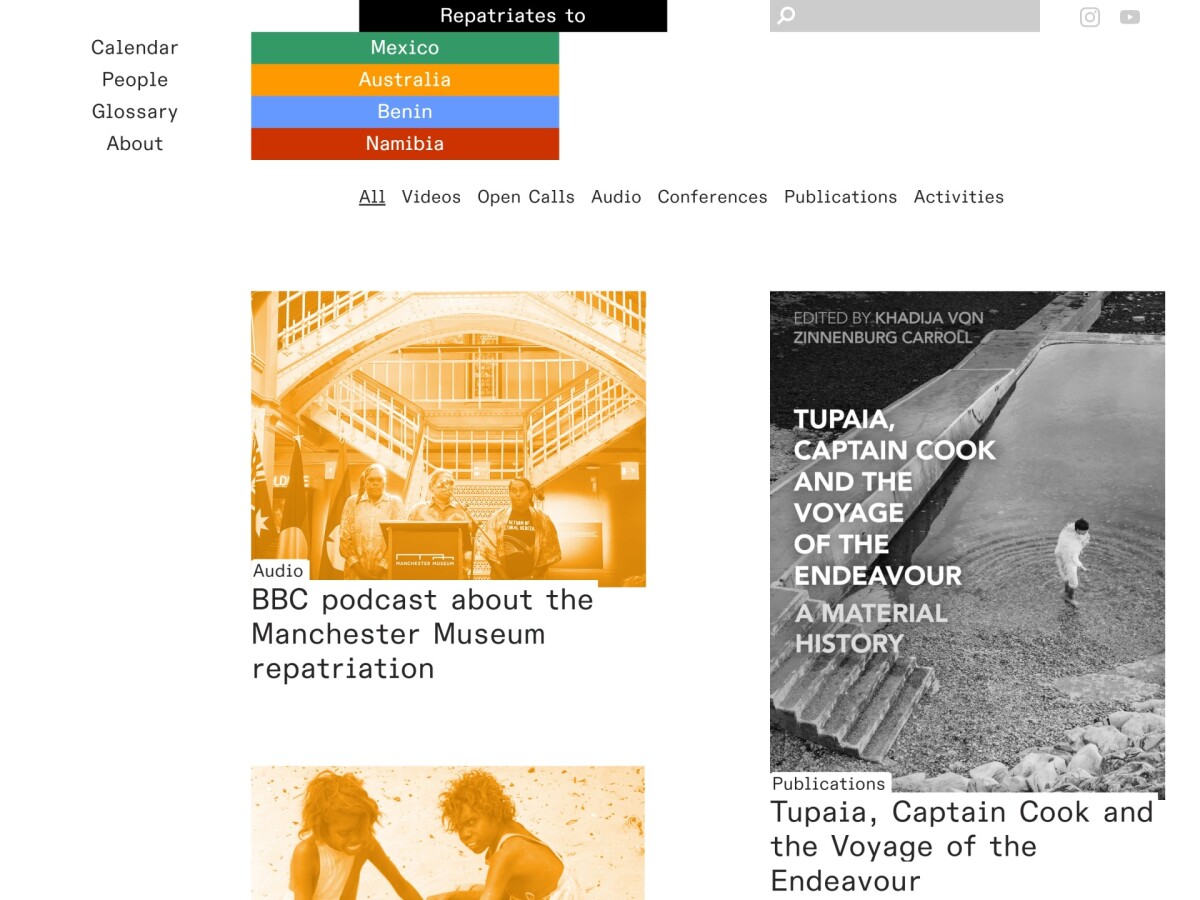 Repatriatesrepatriates.orgProgrammierung Michael TrinhGrafik und Screendesign studio TiD KategorienRepatriation: the process by which cultural objects are returned to a nation or state at the request of a government.mehr erfahren